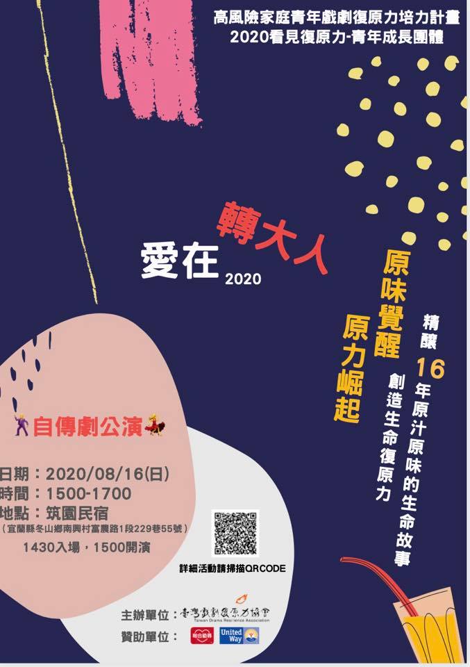 【愛在x轉大人】2020看見復原力-青年成長團體自傳劇工作坊 0813-0817
